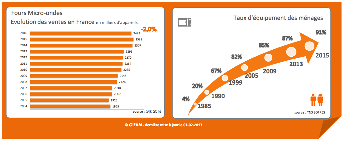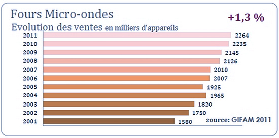 Les ventes d'appareils électroménagers sont de près 15 millions de gros appareils ménagers, 42 millions de petits appareils et 6,5 millions d'appareils de chauffage et de production d'eau chaude par l'électricité.